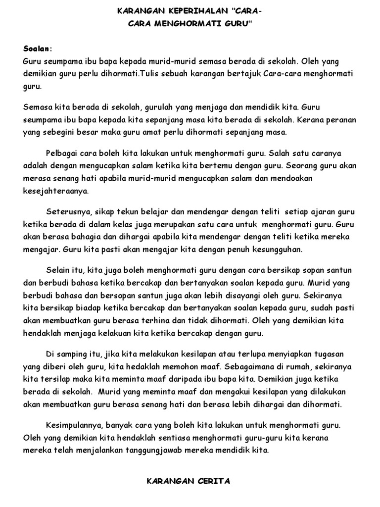 Karangan Jenis Menyambung Cerita Ini adalah contoh karangan seorang murid semasa ujian Saya rasa jalan ceritanya baik dan dikarang secara spontanNamun begitu karangan ini telah saya edit sebelum disiarkan. Orang Yang Saya Sayangi 3. 10 kumpulan contoh cerita pendek untuk anak sekolah dasar 1.
